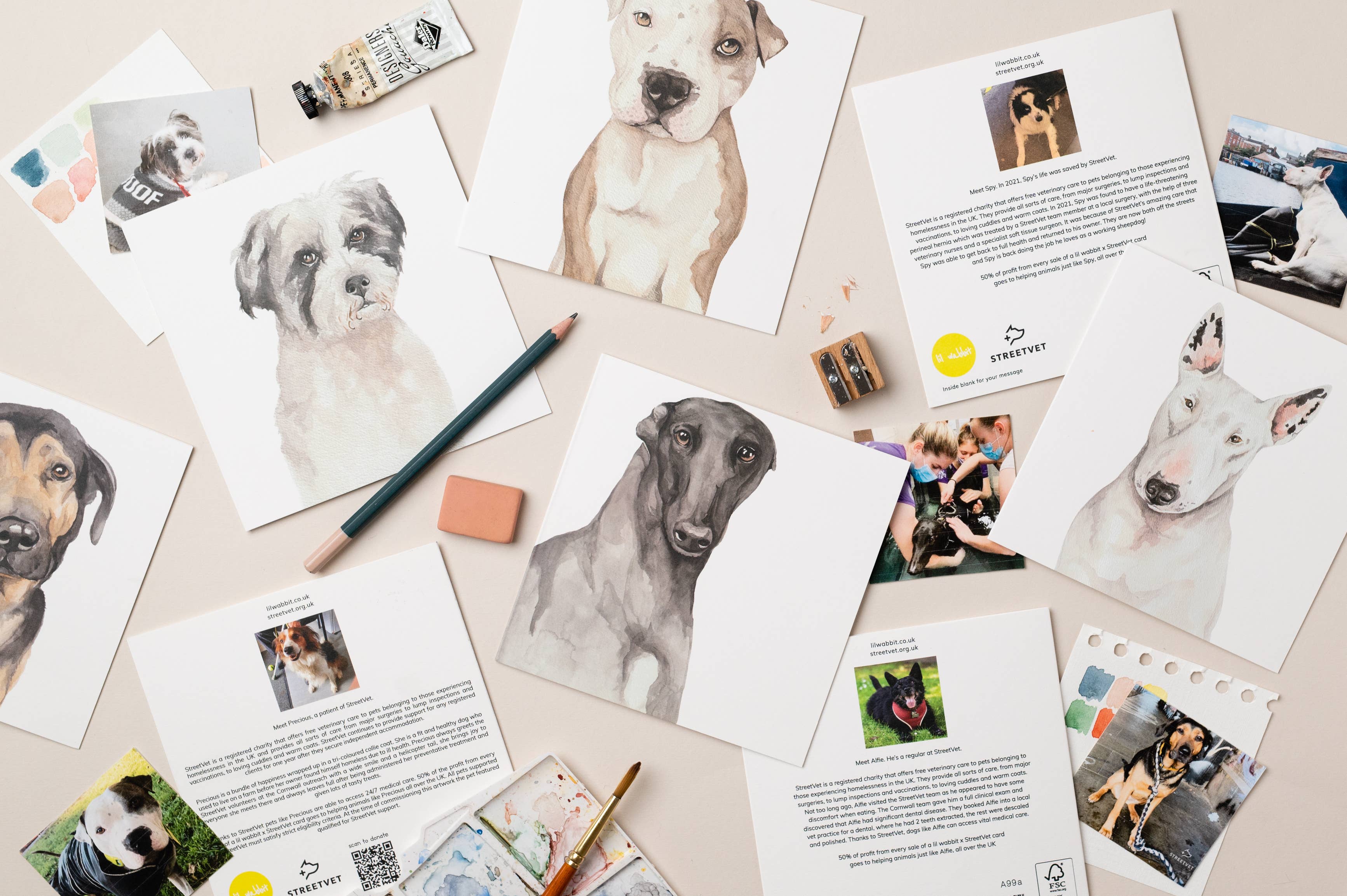 The back features a photo of the animal that inspired the card and a bit about them and the care they have received from StreetVet.
