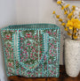 Teal Cotton Kantha Quilted Tote Bag - Default Title