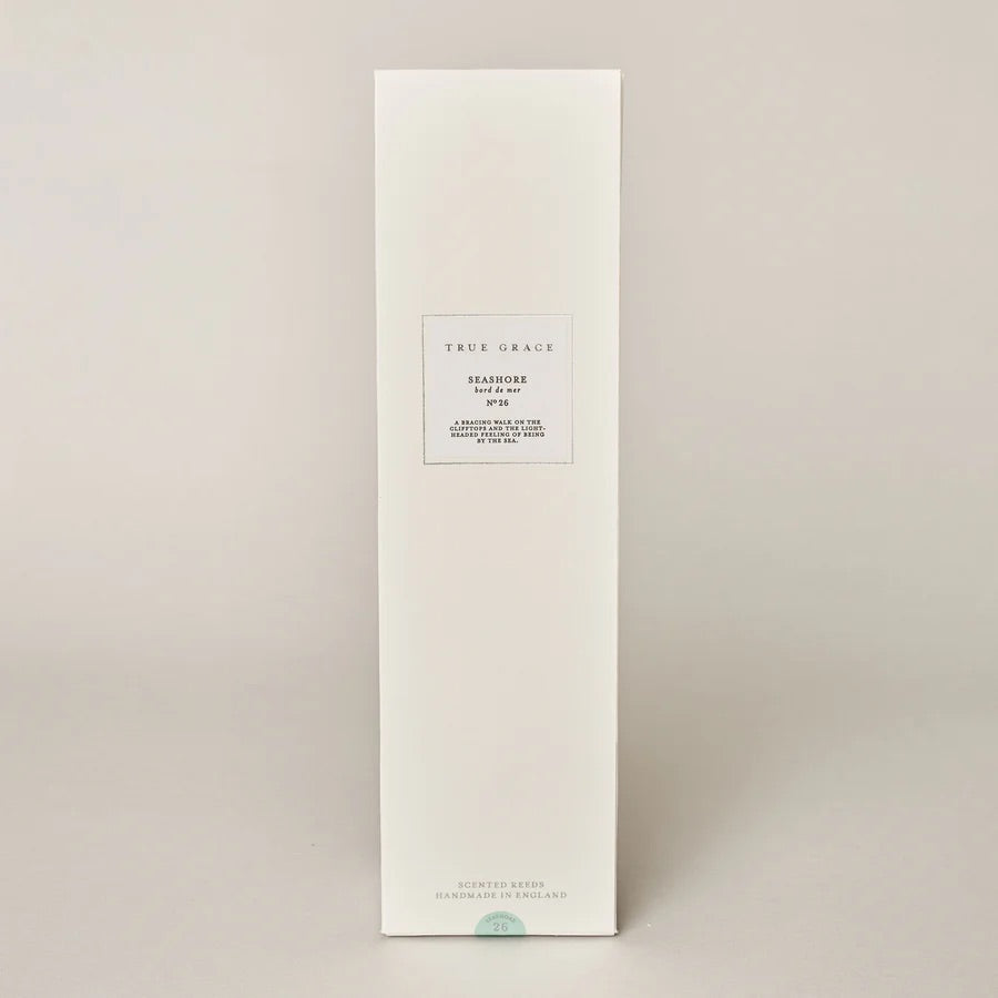 Our Seashore Diffuser Set fills the room with a fresh and clean scent. Made in small batches at our Wiltshire factory and fragrant with notes of Neroli, Moss and Geranium, this Village diffuser is perfect for keeping the bathroom or kitchen, fresh. Presented in a timeless etch-effect glass bottle, this diffuser contains 20% fragrance – the equivalent of a ‘pure perfume’ and stays fresh for up to 10 weeks.