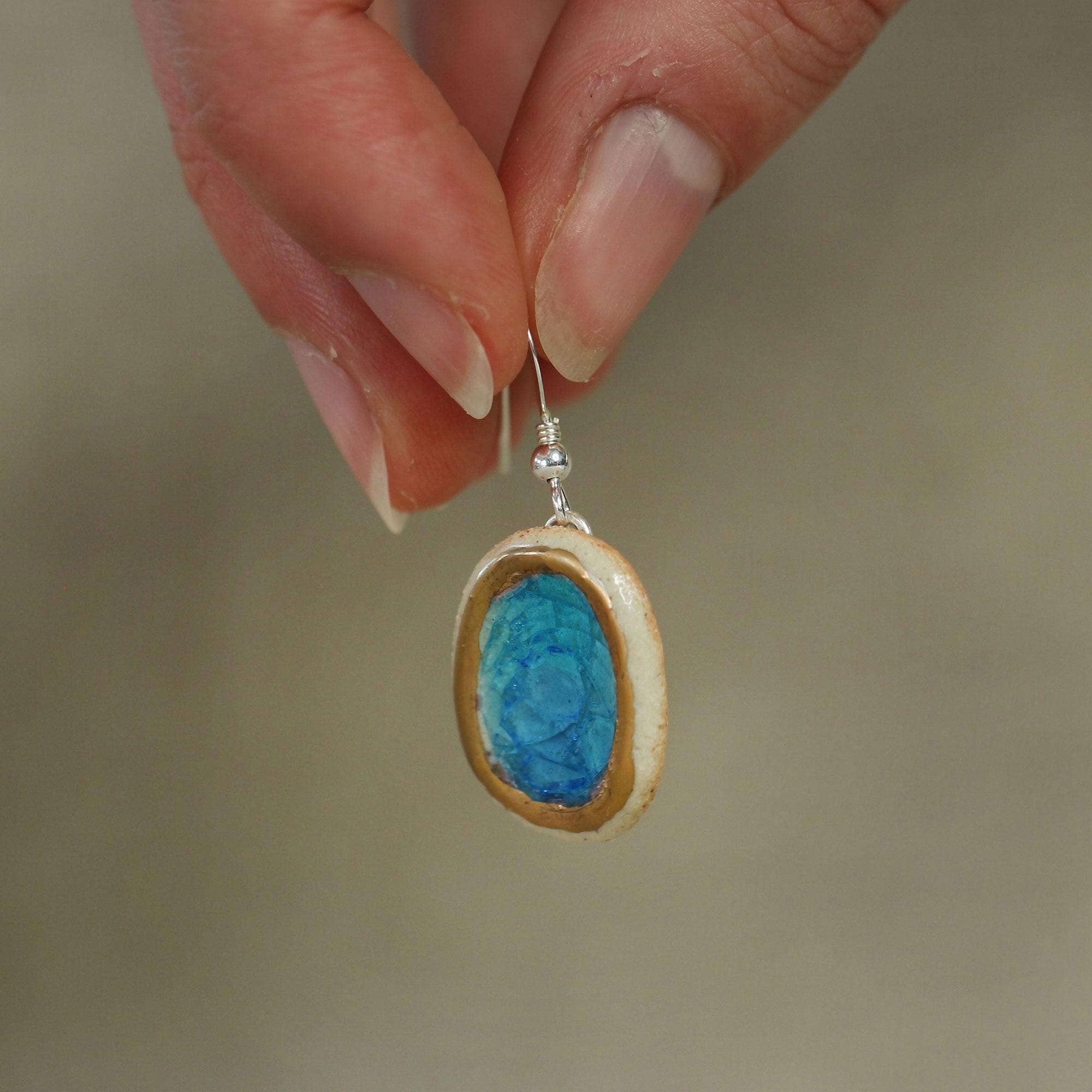 Paddle through the still waters of these vibrant blue glass elegant oval earrings. These gradient hanging earrings add a fresh pop of colour to your complexion and make a special gift for a loved one.
