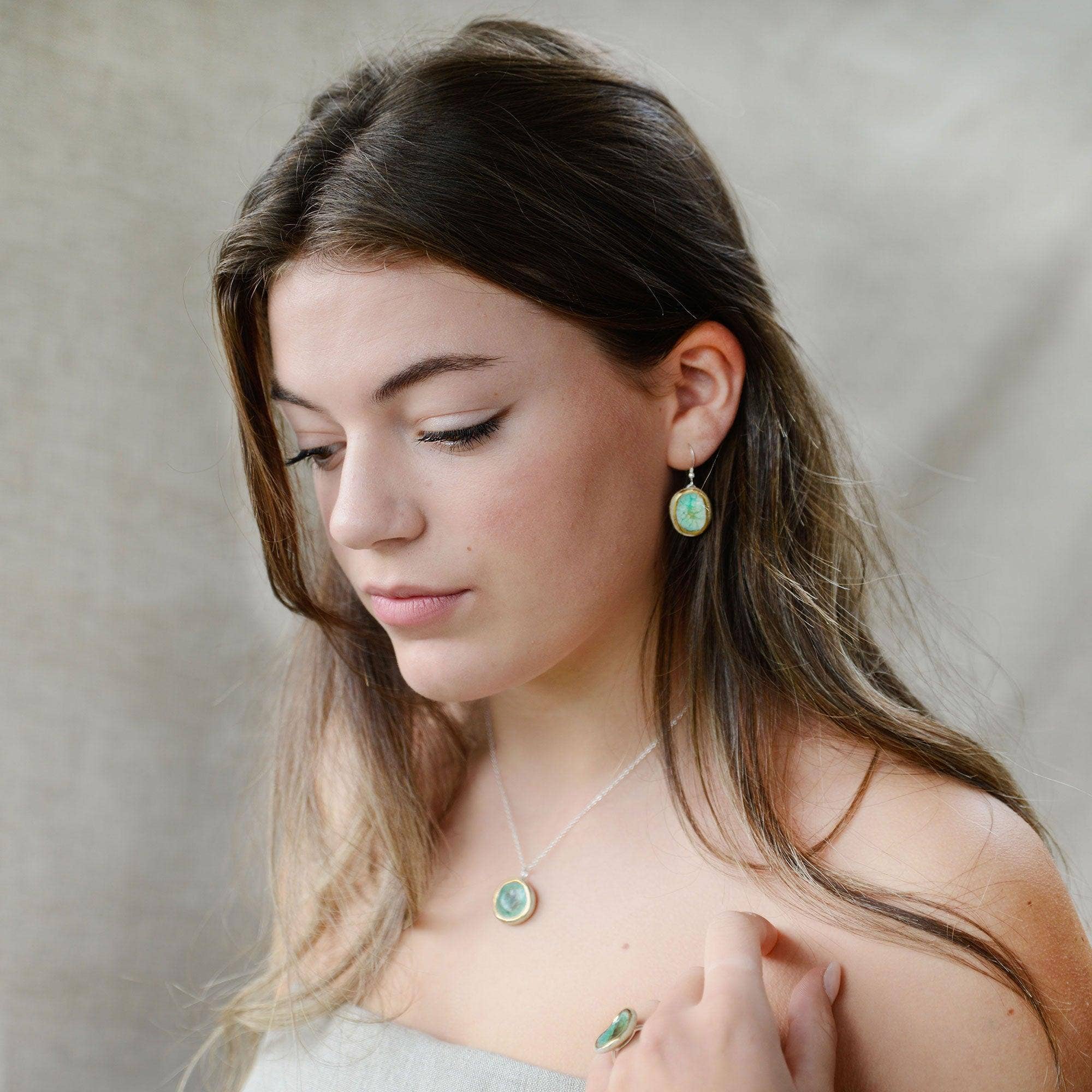 Turquoise Blue Lagoon Oval Sterling Silver Drop Earrings
