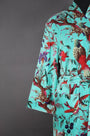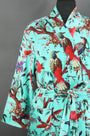 Unlined Luxury Cotton Velvet Kimono Robe - Blue Tropical