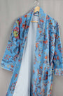 Velvet Kimono With Lining Gown - Blue Floral