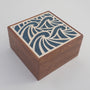 This attractive little trinket box has been lovingly handcrafted from solid Sapele. The striking blue and cream waves marquetry design on the lid of the gift box has been precisely hand cut from Sycamore and coloured Oak veneer.