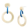 White natural and blue lacquered round link earrings