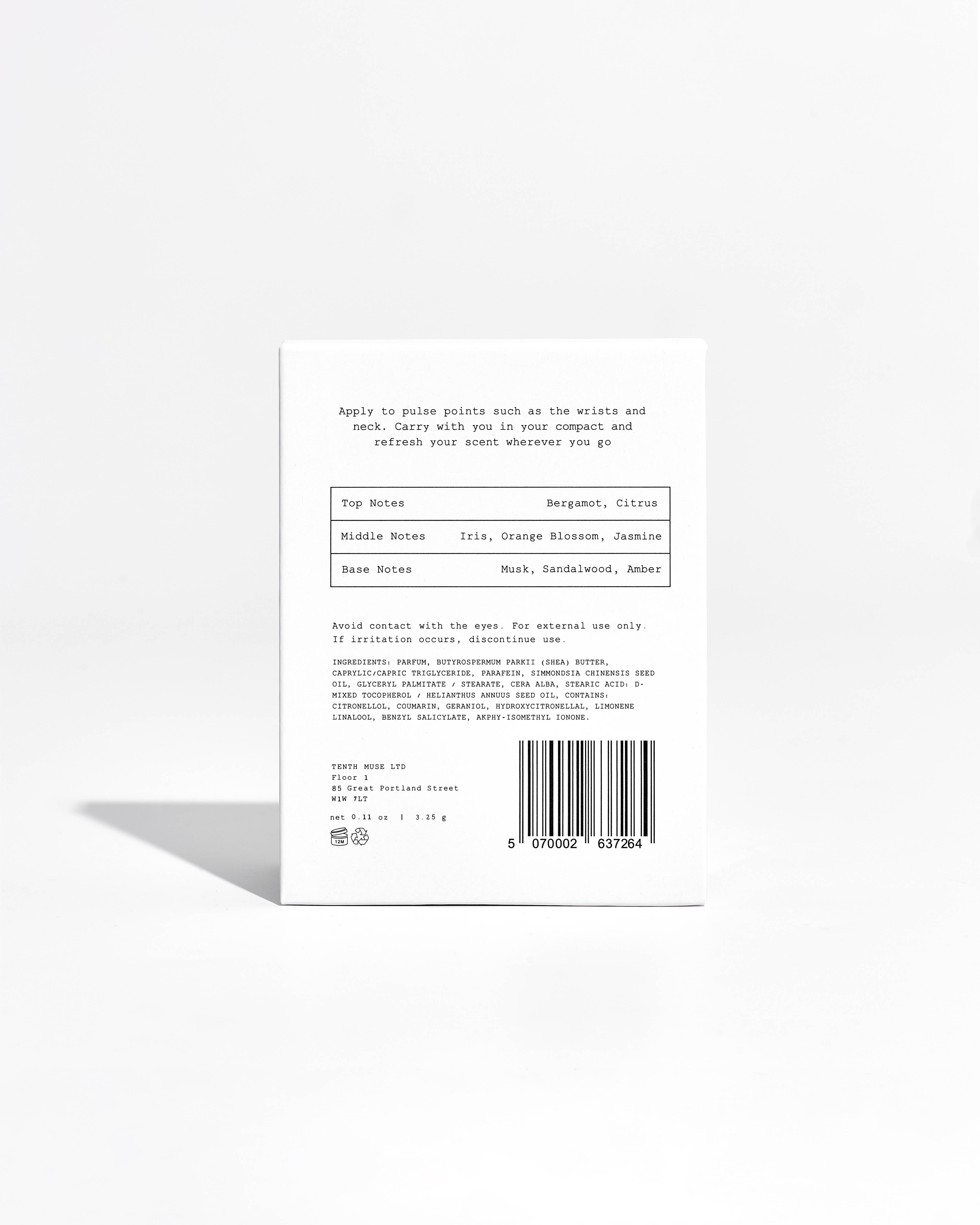 Imagine yourself walking through a sunlit meadow filled with blooming wildflowers. Opening with fresh, dewy notes before transitioning into a delicate bouquet of vibrant florals and earthy undertones. It grounds you in the serenity of nature's beauty, with a hint of unpredictability mirroring the untamed spirit of wildflowers. Simply warm the perfume up with your fingertips and apply to your wrist and neck for a beautiful scent that lasts all day. When your scent is finished, or you just want to switch things up, our magnetic compact makes it easy to refill or mix and match fragrances. Made with shea butter, coconut oil, beeswax, vitamin E, fragrance & essential oils. Top Notes: Bergamot, Citrus Middle Notes: Iris, Orange Blossom, Jasmine Base Notes: Musk, Sandalwood, Amber