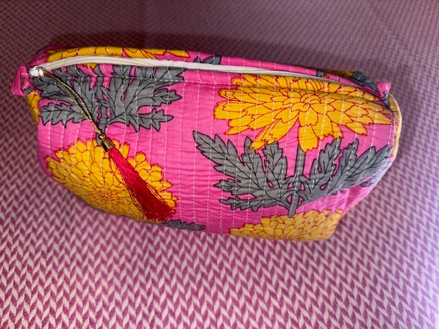This quilted washable cotton bag is suitable for a handbag tidy, makeup or a wash bag. Each has 4 pockets inside and is lined with a wipeable water resistant fabric.